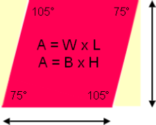 The same Trigonometric method can be applied to obtain total area of a Square object, but is unnecessary. Each corner of a Square is 90° and the Sine 90° is 1. To find the area of a Rectangle this method cannot be used. By definition a Rectangle’s Length or Height measurement differs from its Width or Base.